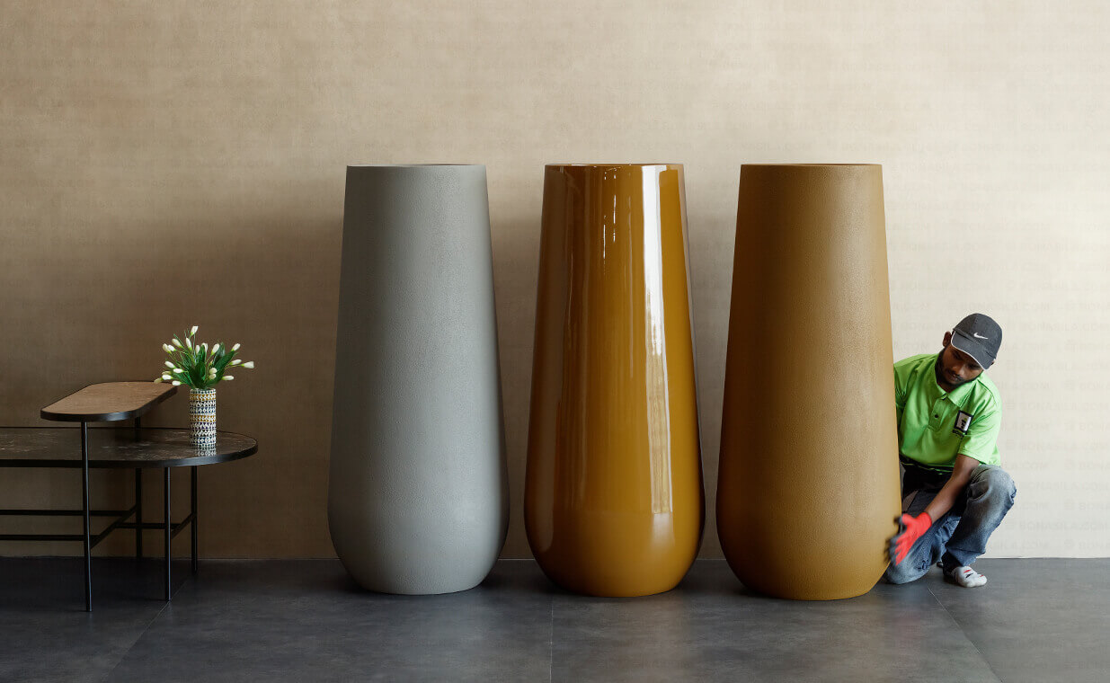 Tall planters manufacturers either go for functionality or for looks when it comes to big size plant pots. But Feijo MS large size planters comfortably blend elegance and functionality. Commanding attention with their grandeur, these planters are perfect for framing entrances and walkways.