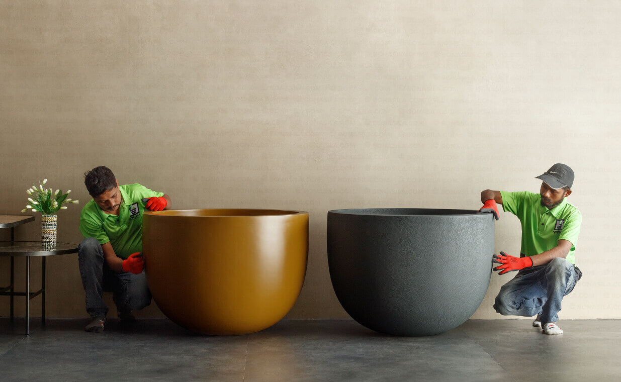 Elevate your botanical showcases with this big flower pot. We worked on elements that big size planter pot manufacturers overlook and designed with care. This big flower pot stands at the crossroad of grace and greenery and infuses elegance and vitality into your surroundings. The curved large fibre pots create a stunning display and improve the overall decor of the space.