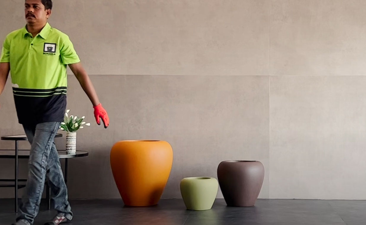 Orino can be placed into living halls, walls adjacent to the dining hall as a standalone planter. Orino’s elegant curves & simplistic beauty makes it stand among the array of decorative pots.